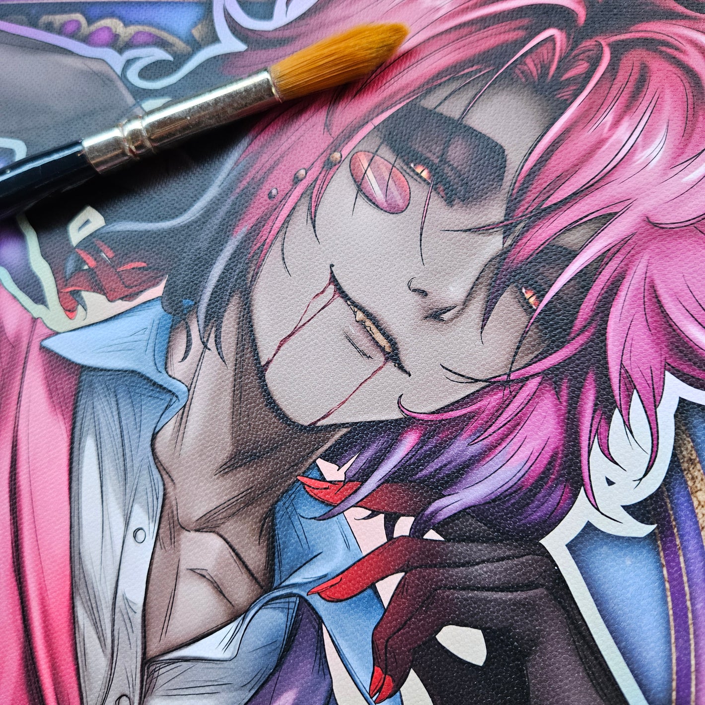 Printed in high resolution on real canvas fabric with a visible woven texture that gives a more painterly and durable finish. Posters feature gold-toned borders that naturally frame the illustration.