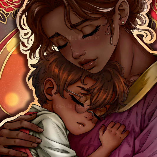 Human Alastor and his momma in Art Nouveau style
