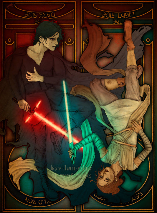 Rey & Kylo Ren in Art Nouveau style